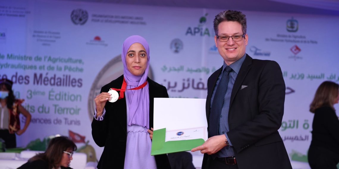 En effet, du 26 février au 6 mars 2022 plusieurs produits médaillés au Concours des Produits de Terroir sont en train d’être exposés dans le pavillon tunisien au Salon International de l’Agriculture SIA Paris grâce à l’appui de l’APlA et du PAMPAT (ONUDI/SECO). Plusieurs femmes représentent le secteur et font découvrir aux visiteurs français et internationaux des délices tunisiens primés à base de dattes, de figue de barbarie et de grenade produits par trois jeunes start-up à savoir Organica, Herbalya et Tazart. Ces nouvelles entreprises s’orientent vers l’exportation et combinent le savoir-faire traditionnel typiquement tunisien avec des techniques de production conformes aux règles d’hygiène et de qualité exigée sur les marchés internationaux.